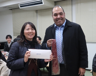 On Thursday, January 29, an international seminar titled “From Agricultural Waste to Planetary Health: A Sustainable Nanosensor Platform for Simultaneous Dual Sensing of Agrochemical Pollutants” was held at the Yeh Kuo-Shii Global Friendship Center on Nagasaki University’s Bunkyo Campus. The seminar welcomed Associate Professor Mahmoud Hamed El-Maghrabey of Mansoura University, Egypt, who is an alumnus of Nagasaki University’s doctoral program, as the guest speaker.