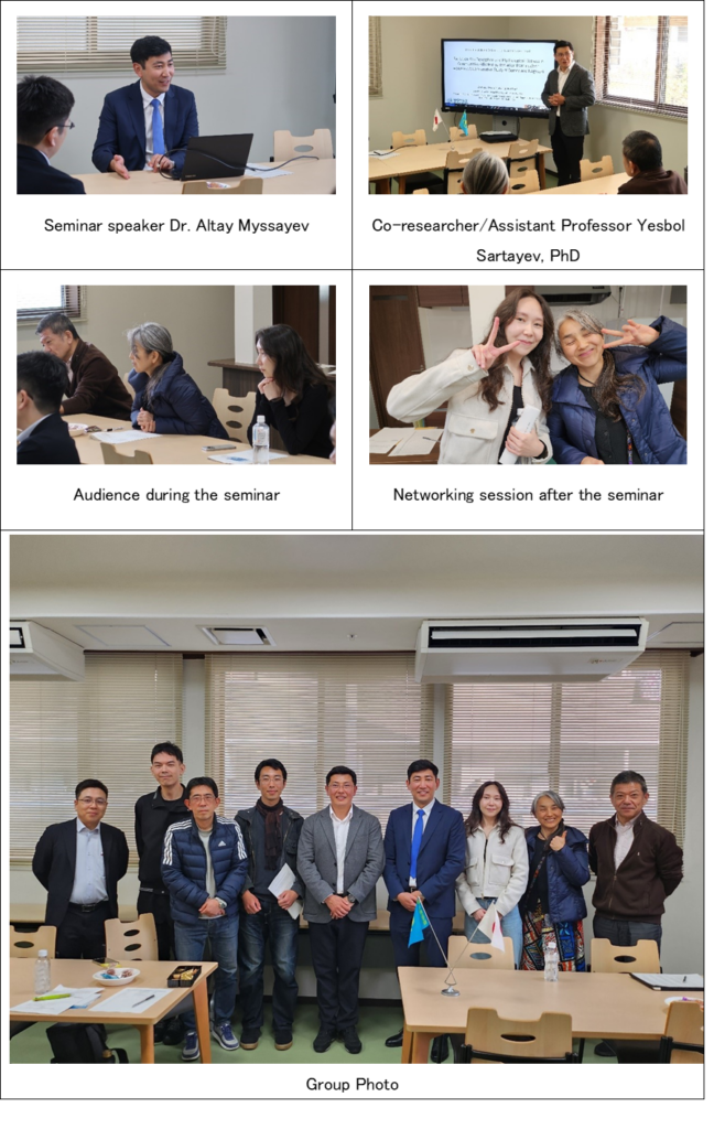 During the seminar, Dr. Myssayev presented the latest findings from a comparative study focusing on two regions historically affected by nuclear weapons: Nagasaki, which experienced an atomic bombing in 1945; and Semey, Kazakhstan, where numerous nuclear tests were conducted by the former Soviet Union.